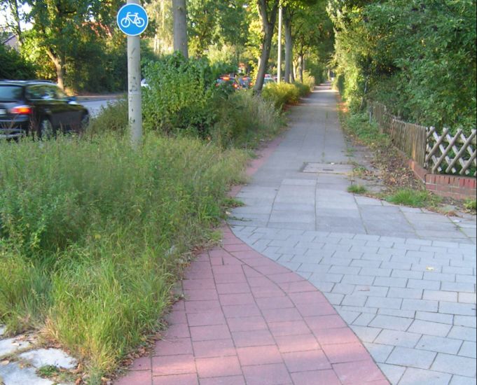 Blaue Schilder dürfern ignoriert werden, z.B. wenn Radverkehrsanlagen in der Praxis unbenutzbar sind. Auf dem Gehweg neben einem unbenutzbaren b-pflichtigen Radweg darf allerdings keinesfalls gefahren werden, Radfahrer müssen dann auf die Fahrbahn.